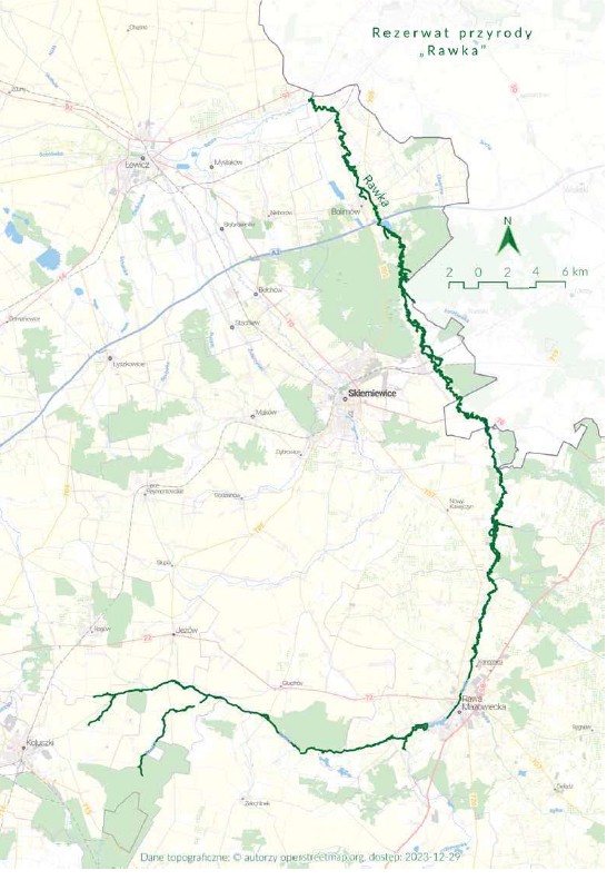 Pozostała część rezerwatu rzeka „Rawka" 526,31 ha znajduje się w zasięgu terytorialnym Nadleśnictwa Skierniewice.